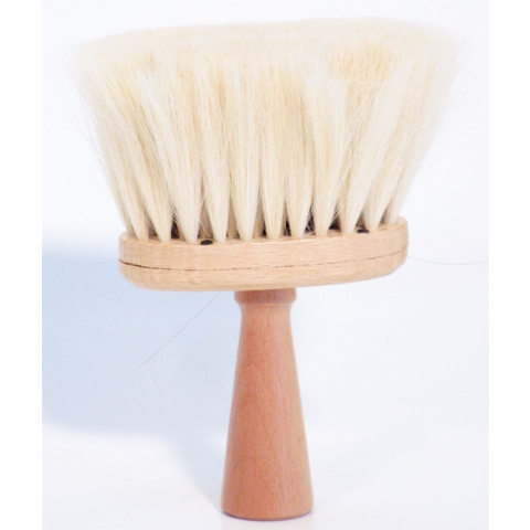 Kecskeszőr nyakszirt kefeBársonyos tapintású kecskeszőrből készült nyakszírt kefe,fa nyéllel. Ideális keménységű kecskeszőr, amely irritáció nélkül és könnyen szedi le a levágott hajat a bőrről.