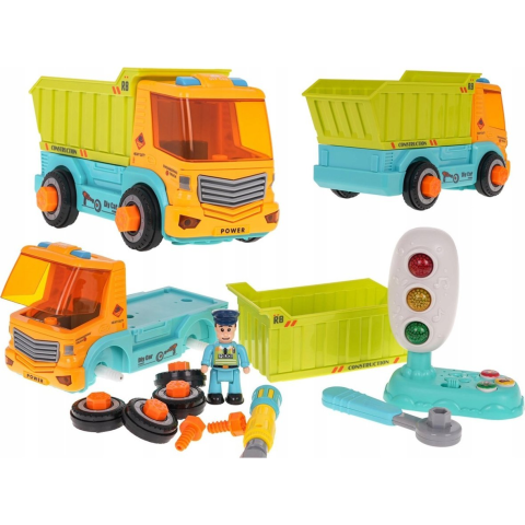 1 kép 1PUNKT Szétszerelhető Dömper Készlet Interaktív Jelzőlámpával És Rendőr Figurával (ZAU.855-S17)
