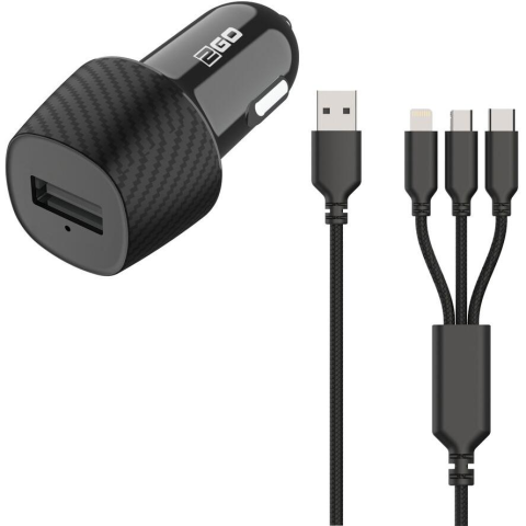 2go USB KFZ-Ladegerät 3in1 Micro-USB, Lightning, USB-C sw (797258)