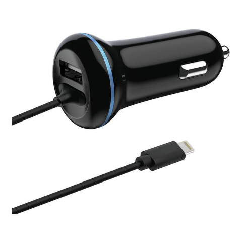 2go USB-Kfz-Ladegerät DUO Lightning + 1x USB 1,4m schwarz (797169)