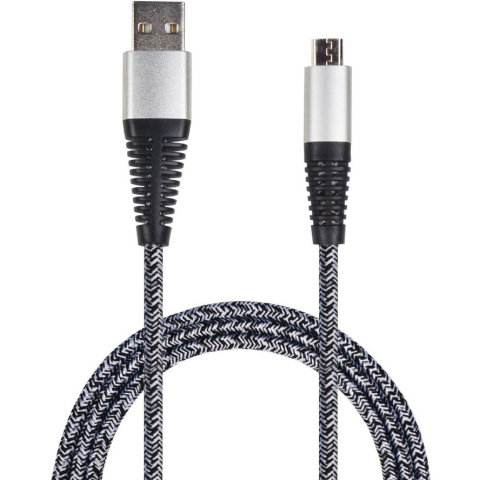 2go USB Lade-/Datenkabel USB-A - Micro-USB  1m  Nylon silber (795951) mobiltelefon kellék 1 kép