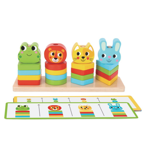 Fa készségfejlesztő torony formák színek állatok