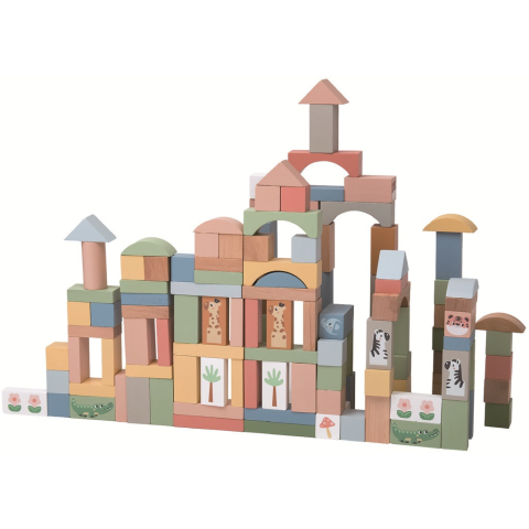 Fa kirakó kockák 120 db-os szafari állatokkal