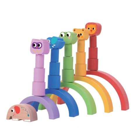 Készségfejlesztő fa egyensúlyozós játék szivárvány állatokkal