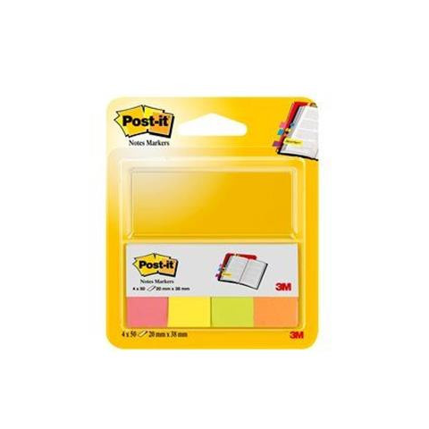 Jelölőcímke, papír, 4x50 lap, 20x38 mm, 3M POSTIT, neon vegyes - ideális rövid üzenetekhez (telefonszámok, árak, hivatkozások stb.) - írható felület - papír alapanyag