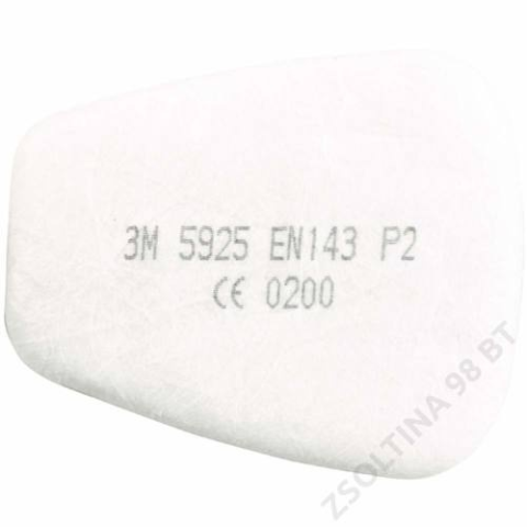 3M 5925 P2 RÉSZECSKESZŰRŐ 80 DB/KRT * 3M részecskeszűrő betétek a 3M teljes illetve félálarcokhoz * 3M_5911: P1R előszűrő, 3M_5925: P2R előszűrő, 3M_5935: P3R előszűrő * 3M_501: adapter 5000-es sorozatú előszűrők gázszűrőhöz rögzítésére