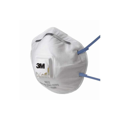 3M 8822 FFP2 szelepes pormaszk A termék megfelel az EN 149 szabványnak. Az LMK 12-szereséig védő, kilégző szeleppel ellátott kagyló alakú porálarc, FFP2. Felhasználható Pl.: vízbázisú festékek szórása, cement kezelés, gépi facsiszolás, szigetelési munkák