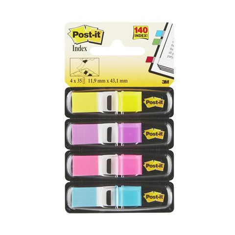 Jelölőcímke, műanyag, 4x35 lap, 12x43 mm, 3M POSTIT, élénk vegyes - bármilyen dokumentum színkódos rendszerezésére alkalmas - írható