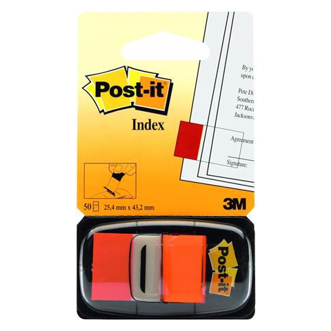 Jelölőcímke, műanyag, 50 lap, 25x43 mm, 3M POSTIT, narancs - információk színkódos rendszerezésére - az öntapadó jelölőcímkék nem csak áthelyezhetők, de írni is lehet rájuk - 50 db címke/adagoló - méret: 25,4x43,2 mm - bliszteres kiszerelés