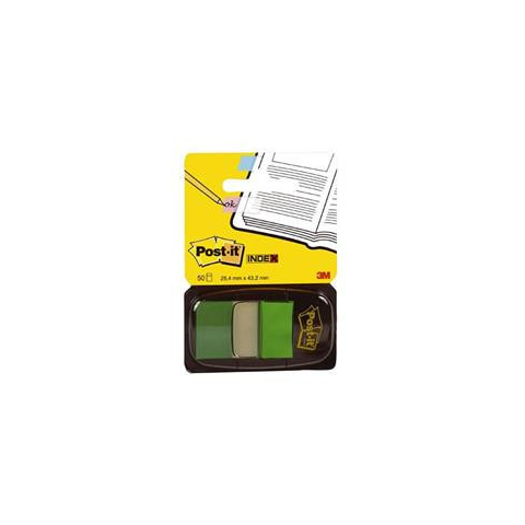 Jelölőcímke, műanyag, 50 lap, 25x43 mm, 3M POSTIT, zöld - információk színkódos rendszerezésére - az öntapadó jelölőcímkék nem csak áthelyezhetők, de írni is lehet rájuk - 50 db címke/adagoló - méret: 25,4x43,2 mm - bliszteres kiszerelés