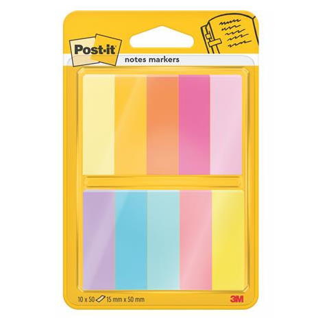 3M POSTIT Jelölőcímke, papír, 10x50 lap, 15x50 mm, 3M POSTIT, vegyes