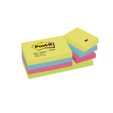 Öntapadó jegyzettömb, 38x51 mm, 12x100 lap, 3M POSTIT "Energetic", vegyes színek - LP653TFEN - Kisméretű öntapadó jegyzettömbök - energikus, fiatalos színek