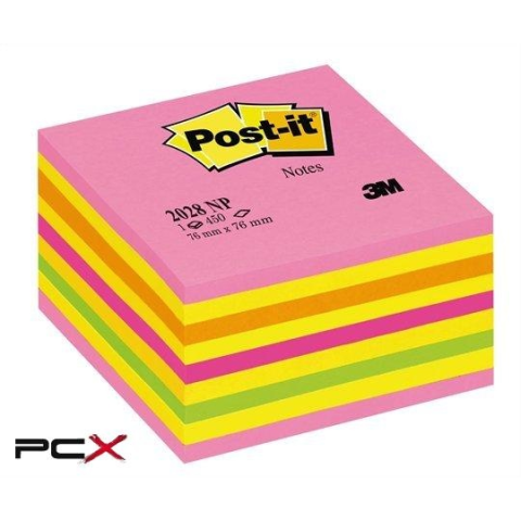 Öntapadó jegyzettömb, 76x76 mm, 450 lap, 3M POSTIT, lollipop pink - LP2028NP - Közepes méretű öntapadó jegyzettömbök - - élénk színek sokasága egy jegyzettömbkockán belül - dinamikus, kreativitásra ösztönző összeállítás