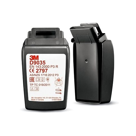 Légzésvédő szűrőbetét - D9035, 3M™ Secure Click P3 R részecskeszűrő, rögzített D9000 sorozatú házzal - szilárd és folyékony részecskék - 2 db-os csomag
