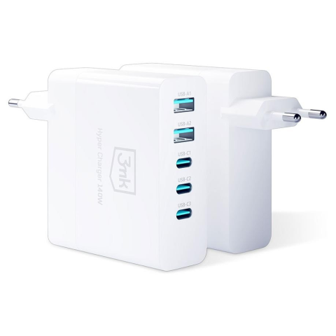 1 kép 3MK Hyper 2x USB-A / 3x USB-C Hálózati töltő - Fehér (140W) (5903108492379)