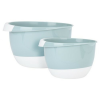A készlet a következőket tartalmazza: 1x tál 3,5 l űrtartalommal - 22 cm átmérővel és 1x tál 2 l űrtartalommal - 18 cm átmérővel.