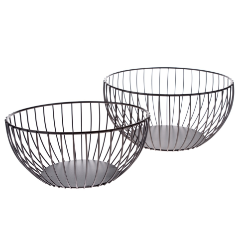 A két egyszerű, elegáns megjelenésű drót gyümölcsös tál praktikus kiegészítője bármely otthonnak, többféleképpen használható a gyümölcs tárolására és díszítésére.