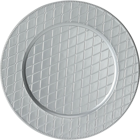 A 33 cm átmérőjű, ezüstszínű Rhombus dekoratív tányéralátét elegánsabbá teszi az étkezési élményt. Ezüstös árnyalata és stílusos rombusz alakú mintája ideális ünnepi alkalmakra, például karácsonyra, szilveszterre vagy hivatalos vacsorákra. Ez a tányéralátét nemcsak feldobja az asztalterítést, hanem megvédi a felületét a hőtől vagy a foltoktól is.