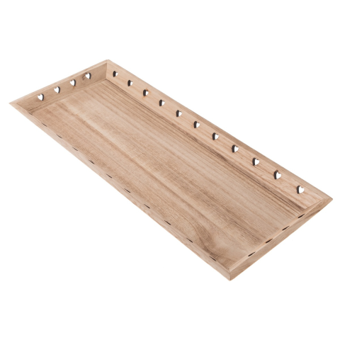 A finom szív alakú kivágásokkal ellátott, természetes dizájnú, fából készült tálca a sokféle felhasználási lehetőségének köszönhetően minden otthonban megtalálja a maga alkalmazását. A fából készült tálca tökéletesen alkalmas rágcsálnivalók vagy italok tálalására. Minden családi vagy baráti összejövetelhez tartozik egy praktikus kiegészítő a tálca formájában, amely megvédi az asztal felületét az esetleges szennyeződésektől. A tálca töké