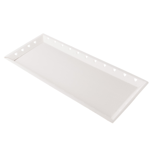 A fehér színű, finom szív alakú kivágásokkal ellátott, fából készült tálca minden otthonban megtalálja a helyét, köszönhetően a sokféle felhasználási lehetőségének. A fából készült tálca tökéletesen alkalmas rágcsálnivalók vagy italok tálalására. Minden családi vagy baráti összejövetelhez tartozik egy praktikus kiegészítő a tálca formájában, amely megvédi az asztal felületét az esetleges szennyeződésektől. A tálca tökéletesen használhat