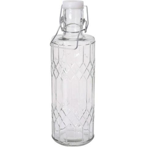 Az 1000 ml-es , csatos kupakkal ellátott üvegpalack praktikus és elegáns megoldás az otthoni italok tárolására. Stílusos, geometrikus mintával ellátott, csiszolt felületének köszönhetően egyszerre dekoratív és funkcionális, és tökéletesen illeszkedik a modern és rusztikus konyhákba egyaránt. Ideális víz, házi szörpök, limonádék vagy jeges teák számára.
