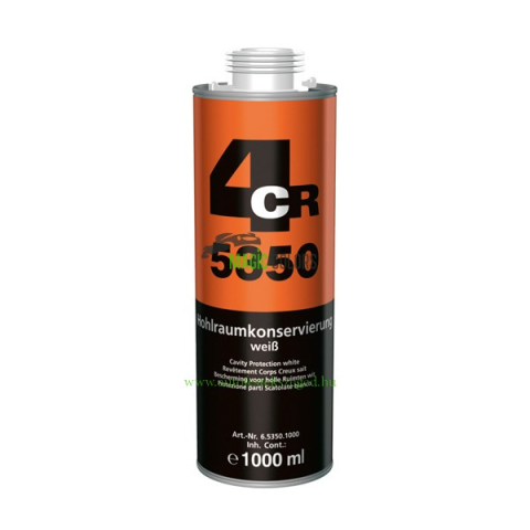 4CR 5350 viasz bázisú üregvédő fehér színben, kiváló kúszóképességgel és 160°C hőállósággal a karosszéria üregeinek tartós védelmére. 4CR 5350 Üregvédő – Fehér (1L) A 4CR 5350 viasz bázisú üregvédő kifejezetten a karosszéria üregeinek tartós konzerválá
