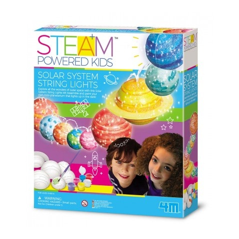 Készíts egy világító fényfüzért, a Naprendszer bolygóival A 4M Naprendszer füzér készlettel meg tudod alkotni a Nap körül keringő bolygókat, és egy világító égősort tudsz belőlük összeállítani. A bolygókat egyesével kell kifesteni, majd felakasztani őket a vezetékre, végül csak ragaszd fel az egész füzért egy megfelelő helyre, ami alá természetesen egy plakátot is tehetsz. A játék a festékeket,