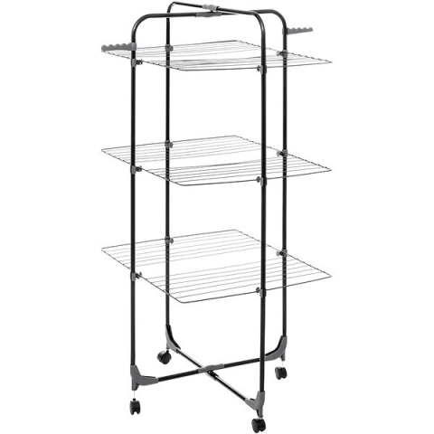 Ruhaszárító - beltéri, álló, összecsukható és emeletes, szabadon álló, 3 emeletes, 36 zsinór/rúd, teljes szárítási hossz 30 m, kerekek a csomag része, a csomag tartalma oldalkarok, anyaga fém, mérete kinyitva 70 × 61 cm (Ma×Mé), mérete összehajtva 70 × 9 cm (Ma×Mé), tömege 3,05 kg A klasszikus 5Five ruhaszárító szabadon elhelyezhető a lakásban. Ez a kiváló minőségű beltéri ruhaszárító nélkülözhetetlen segítőtársaddá válik, amelynek köszönhetőe