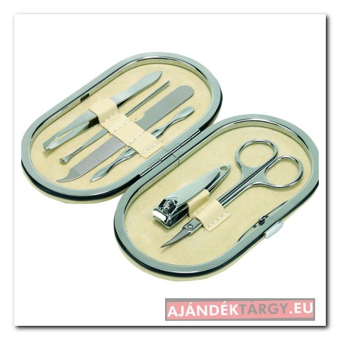 Elegáns manikűrkészlet,tartalmaz egy körömvágó ollót,körömreszelőt, csipeszt,körömcsipeszt,2 manikűrceruzát ovális patentos tokban Méret: 12,4 x 7,5 x 2,1 cm Rendelésre: 5-10 nap! Szín: bézs Nettó súly: 0,104 Bruttó súly: 0,112