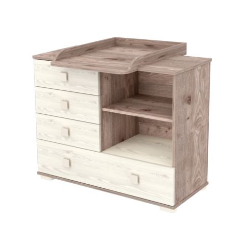 Nyitott polccal és különböző méretű zárt fiókos tárolókkal ellátott, melyek kiválóan pakolhatóak, jól átláthatóak és remekül rendszerezhetőek. A termék szélessége és eltolható feltéte lehetővé teszi a könnyedebb és kényelmesebb pelenkázást. Mindemellett a pelenkázós időszak végén sem kell megválnod a komódtól, hiszen az a pelenkázófeltét levételével normál komódként tud tová
