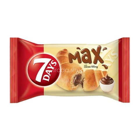 Croissant, 80 g, 7DAYS Max, kakaókrémmel Croissant kakaókrémes töltelékkel. Finom puha tészta gazdag, krémes kakaó vagy más töltelékkel töltve, higiénikusan csomagolva, hogy élvezhesd bárhol, bármikor a nap folyamán. A klasszikus választás minden nap.