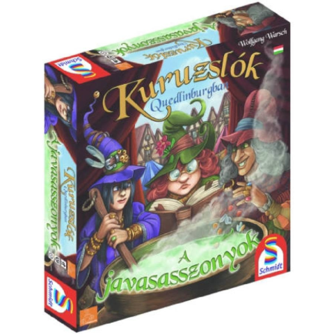 Kuruzslók Quedlinburgban A javasasszonyok kiegészítő segítségével akár már öten is tudtok együtt játszani, és kipróbálhatjátok az új receptkönyveket is. A Javasasszonyok kiegészítő csak az alapjátékkal együtt játszható! Kuruzslók Quedlinburgban A jav