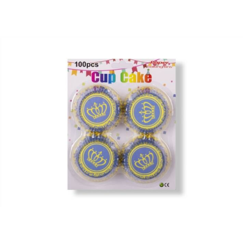 1 kép 100 db kék-sárga korona mintás muffin papír