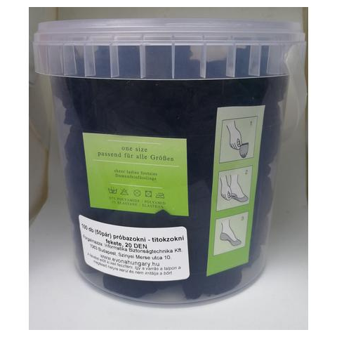 1 kép 100db próbazokni (50 pár) fekete 20DEN, műanyag dobozban