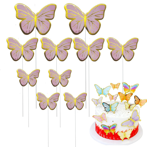 1 kép 10 darabos torta dekoráció, torta beszúró – Pillangó – Rózsaszín
