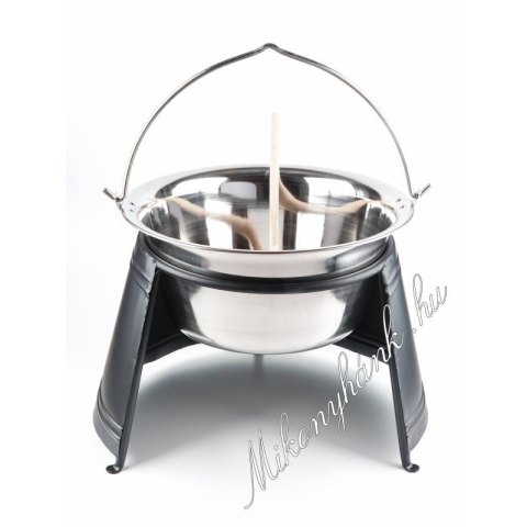 1 kép 10 literes rozsdamentes bogrács(1mm)+29cm-es lángőr szett(5részes)