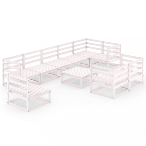 Teljes 10 részes fehér tömör fenyőfa kerti ülőgarnitúra termékleírás