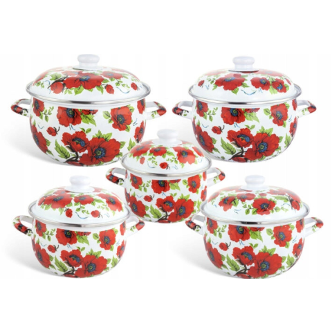 Teljes 10 részes zománcozott edénykészlet/ pipacs termékleírás