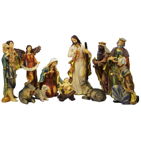11 Figurás Karácsonyi Betlehem - Tartós Poliészter Gyanta Szobrok 🎄 Ez a gyönyörű, 11 darabból álló karácsonyi betlehem tökéletes kiegészítője az ünnepi dekorációnak. A figurák tartós poliészter gyantából készültek, így időjárásállóak, és kültéren i...
