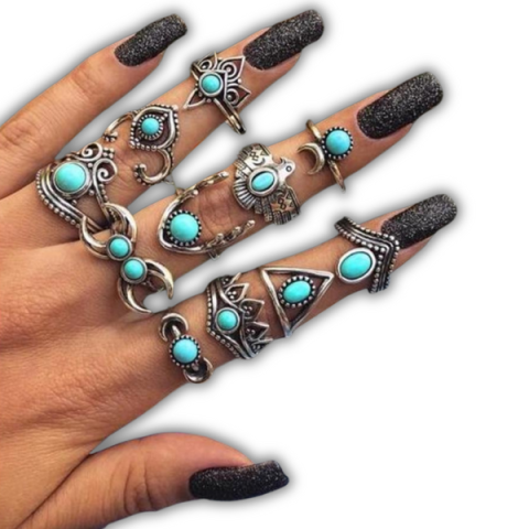 Dobd fel megjelenésed ezzel az 11 részes türkiz gyűrű szettel! Egyedi, elegáns és modern ékszer minden alkalomra