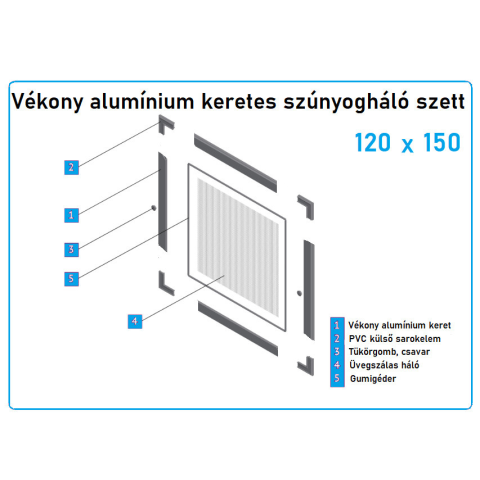 120*150-es alumínium keretes szúnyogháló szett (7*17-es) szúnyogháló 1 kép