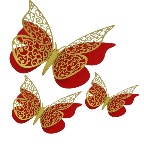 1 kép 12 darabos 4D-s pillangó alakú torta dekoráció – Piros