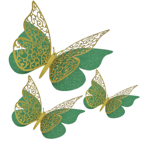 1 kép 12 darabos 4D-s pillangó alakú torta dekoráció – Zöld