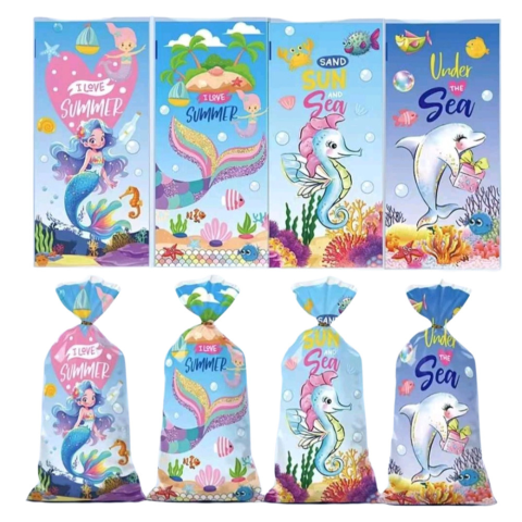 1 kép 12 darabos mintás celofán zacskó, ajándéktasak - Sellő, hableány, tenger