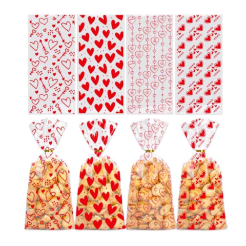1 kép 12 darabos mintás celofán zacskó, ajándéktasak - Szív, szerelem