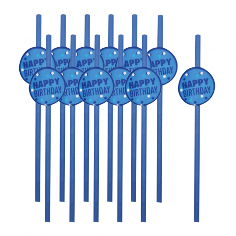 12 darabos kék színű, Happy Birthday feliratú papír szívószál, mellyel igazán feldobhatod a születésnapi ünnepi asztalt. Tulajdonságok: Anyaga: papír A szívószálak mérete: 19,5 cm hosszú A csomagban 12 darab azonos mintájú szívószál található.