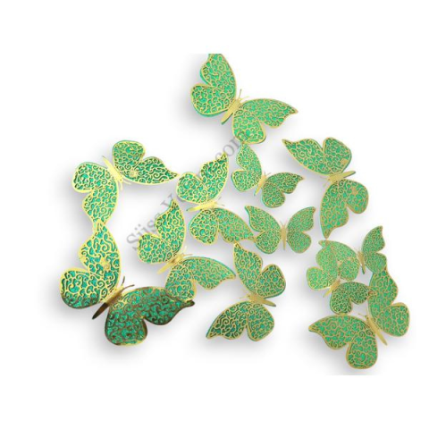 1 kép 12 db arany-zöld 3D pillangó tortadísz