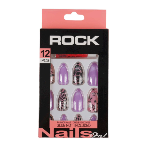12 db ROCK műköröm ragasztóval együtt, 08 Purple Stars