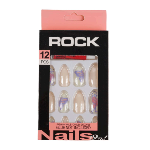 12 ROCK műköröm ragasztóval együtt, 07 pillangó
