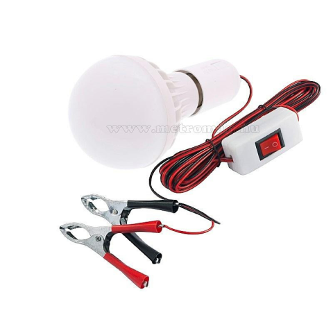 Egyszerűen, 12 Voltos akkumulára csíptetthető 9 Wattos LED lámpa, mely ktűnőel használható kempingezéshez, horgászathoz vagy akár autó szereléshez. - Krokodil csipeszes csatlakozás - 4 méteres kábel kapcsolóval - 12 Volt 9 Watt